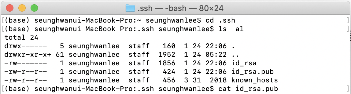 id_rsa 와 id_rsa.pub 이 나타나는 것을 볼 수 있습니다.