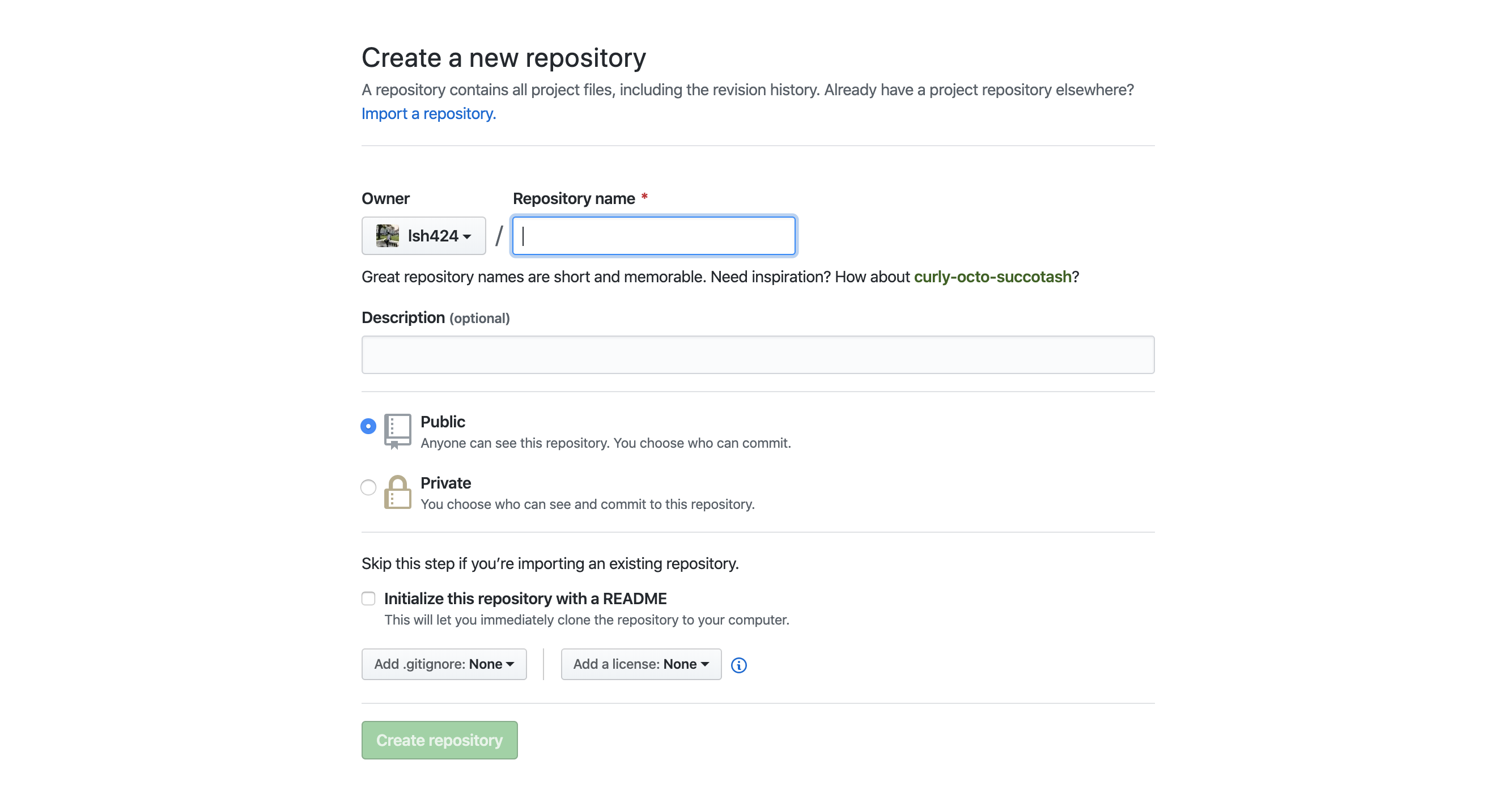 저는 다음과같이 설정한상태로 repository를 생성했습니다.