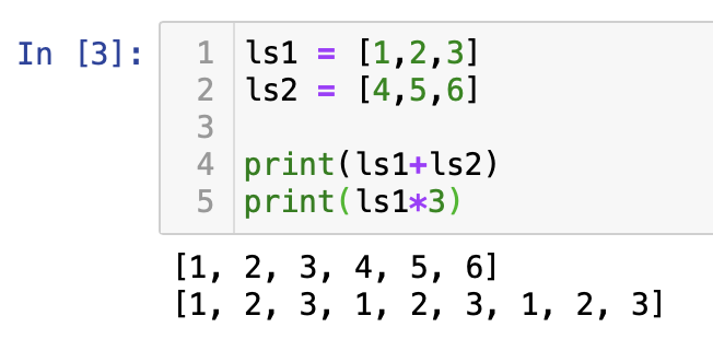 또 덧셈 및 곱셈등의 연산을 통해 쉽게 리스트를 조작 할 수 있습니다.