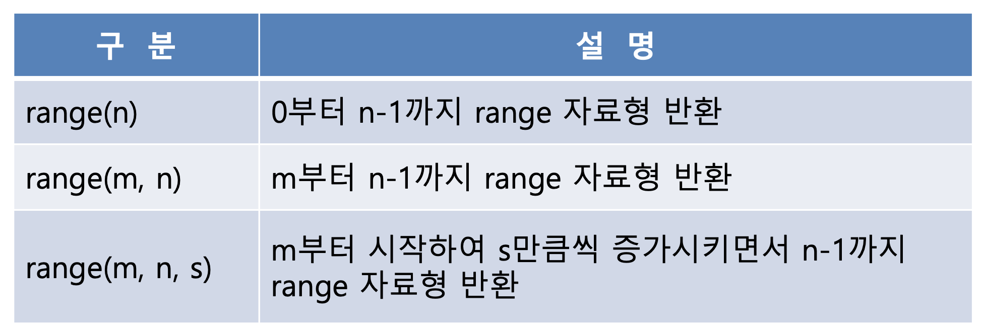 + 추가로 반복문과 리스트에서 자주 사용 되는 range() 함수 입니다.