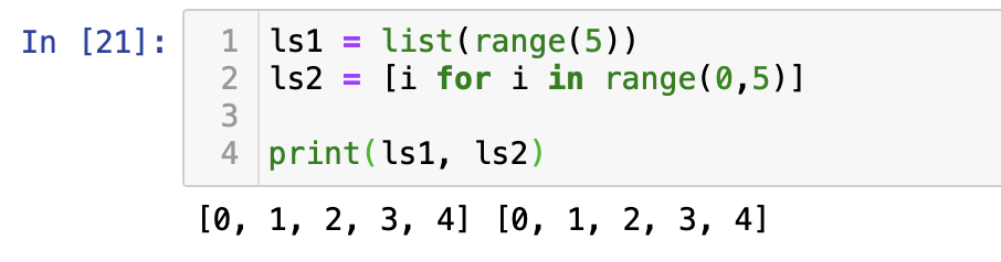 다음과 같이 range()함수 외에 반복문을 통해서도 리스트를 만들 수 있습니다.