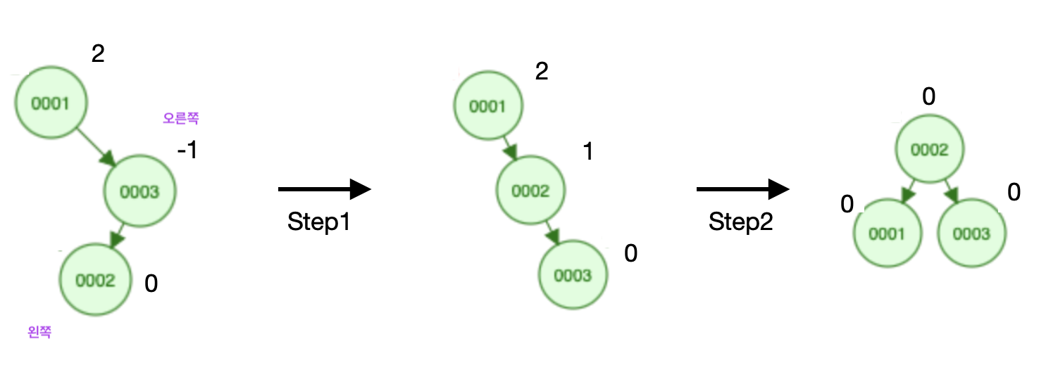 각각의 노드 옆에 높이차를 적게 되는데, 이 높이 차는 해당 노드의 우측 서브 트리 높이- 왼쪽 서브 트리 높이입니다.