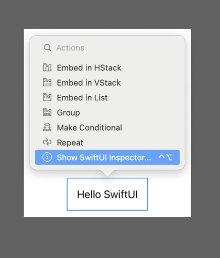 신기하게 프리뷰에서 SwiftUI Inspector 안 들어가고 코드상에서도 스택 사용이 가능하네요. 여기서 Embed in Vstack을 눌러줍시다.