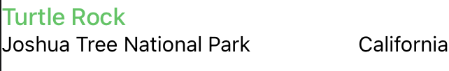 그다음 텍스트를 “Joshua Tree National Park” 로 변경하고 font도 subheadline변경, 그다음 스택의 정렬 기준을 leading으로 바꾸면