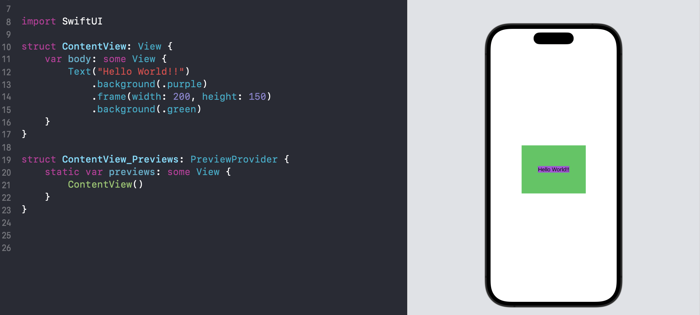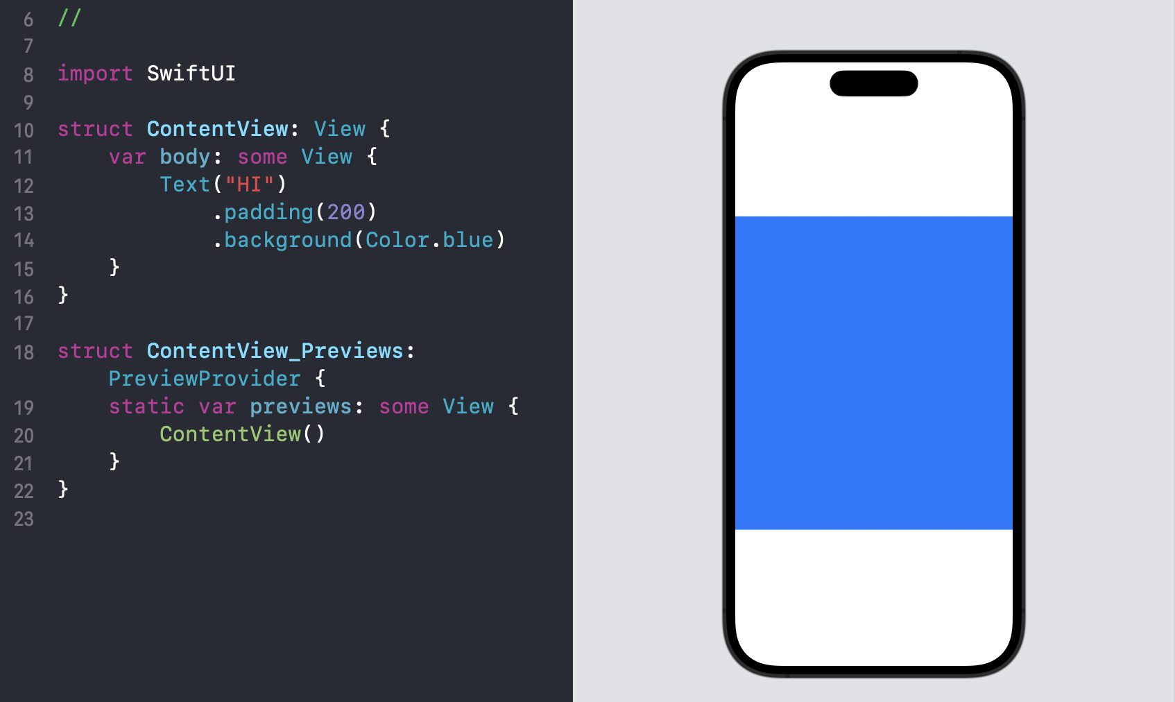 Text 역시 frame과 별개로 자신만의 크기를 갖는 것을 확인할 수 있습니다. (SwiftUI Layout System을 이해하셨다면 왜 아래처럼 UI가 그려지는지 이해할 수 있을 거예요)