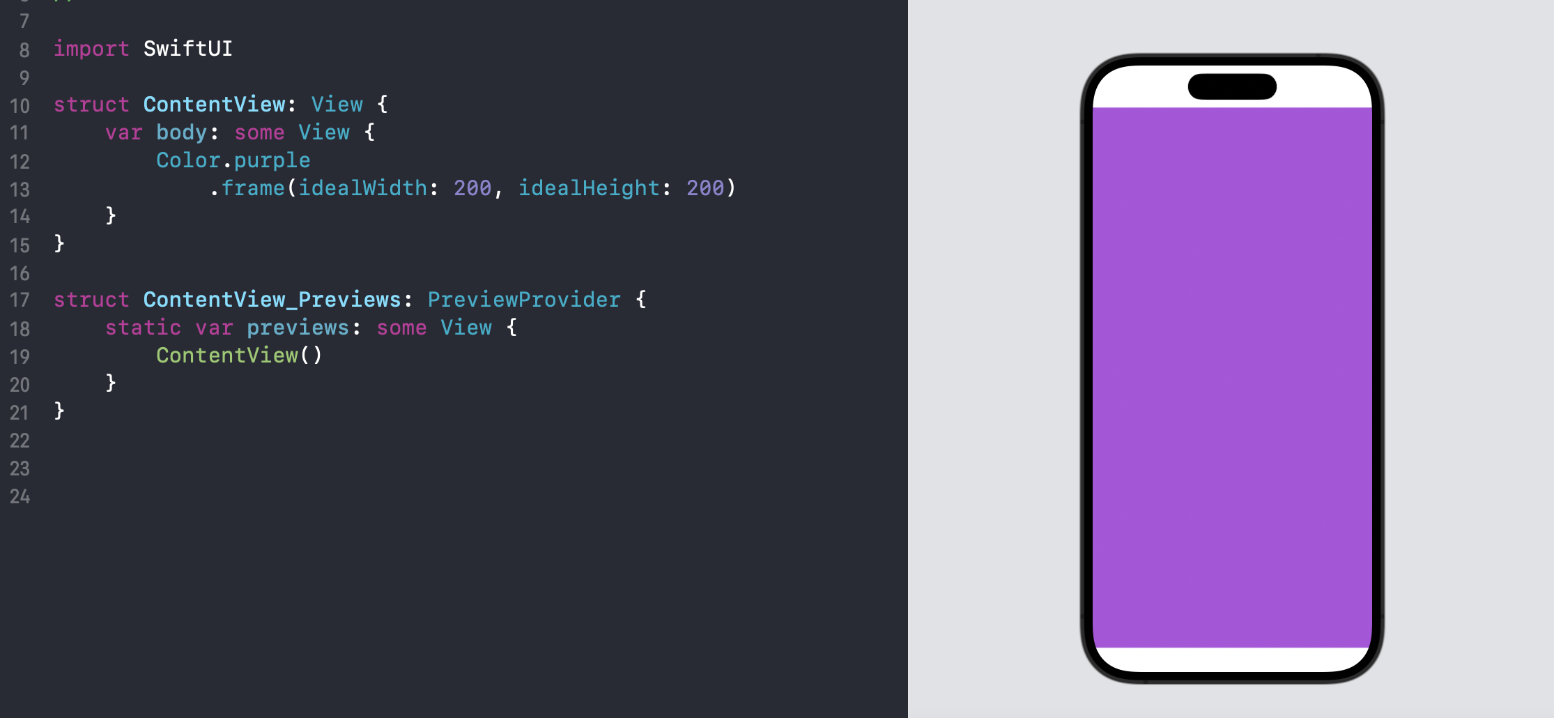 - Text, Image 등 몇몇 뷰는 고유한 크기를 갖는다. (텍스트 및 이미지에 맞춰 고유한 크기를 갖게 됨, UIKit에서도 AutoLayout 제약조건을 설정할 때 label 같은 특정 뷰들의 경우 너비와 높이에 대한 제약 조건을 주지 않고 위치만 잡아주어도 문제 없었죠? 그 이유는 label 텍스트의 고유한 사이즈에 그 크기가 맞춰지기 때문입니다. SwiftUI에서 역시 Text, Image처럼 고유한 크기를 갖고 있는 뷰는 그 크기에 맞춰 사이즈가 설정됩니다.)