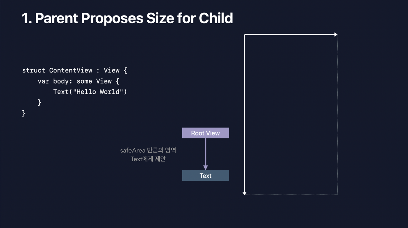 RootView는 레이아웃 프로세스에 근거해, SafeArea만큼의 영역을 Text에게 제안할 겁니다.